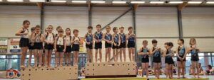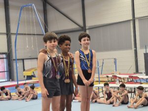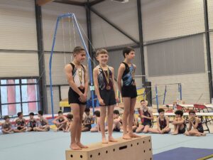 En catégorie pupilles espoir, les gymnastes questembertois décrochent une belle 2ᵉ place grâce aux performances de Lilian, Aaron, Eliott, Sohan, Maxime et Lubin.